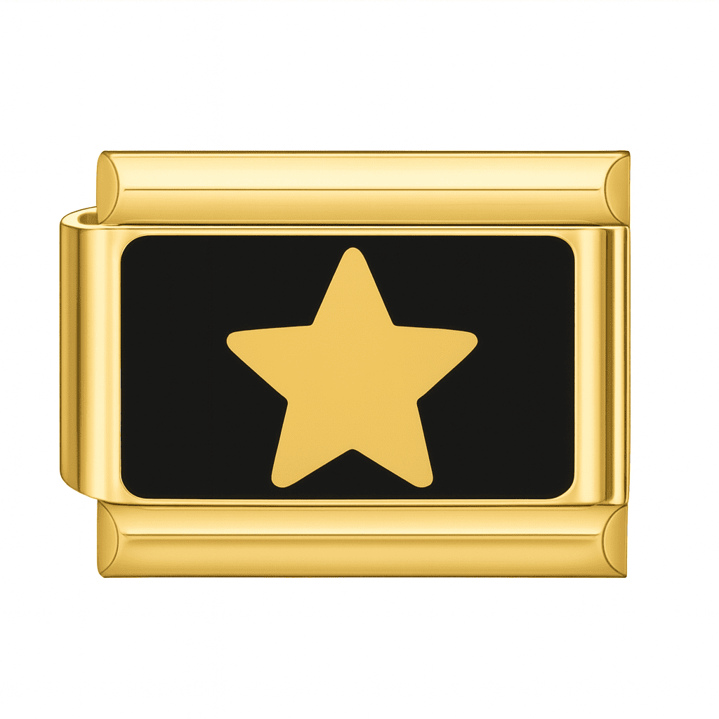 Elaborado en acero inoxidable 316L con baño dorado de alta calidad, el Stella Nera Legami™ conserva su brillo y elegancia con el paso del tiempo.